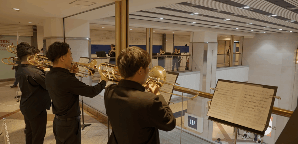 互いに離れた場所に位置する奏者同士のアンサンブルに、とおくから耳を澄ませる。東京芸術劇場やまちなかの吹き抜け空間に、金管楽器群の生音が静かに共鳴する。心地よさと覚醒が共存した音体験となるでしょう。https://tokyo-festival.jp/2023/program/the-far-from-ensemble