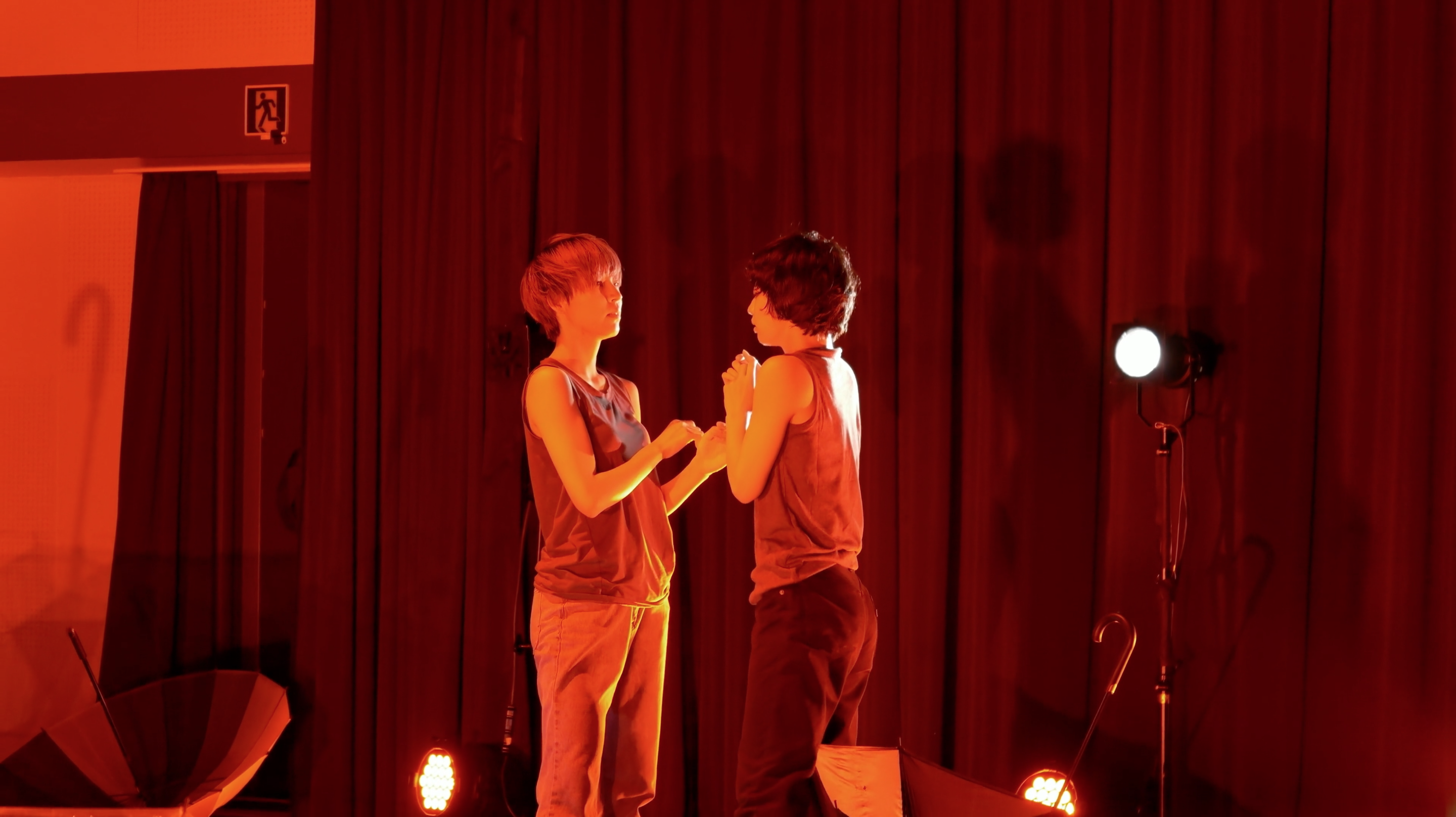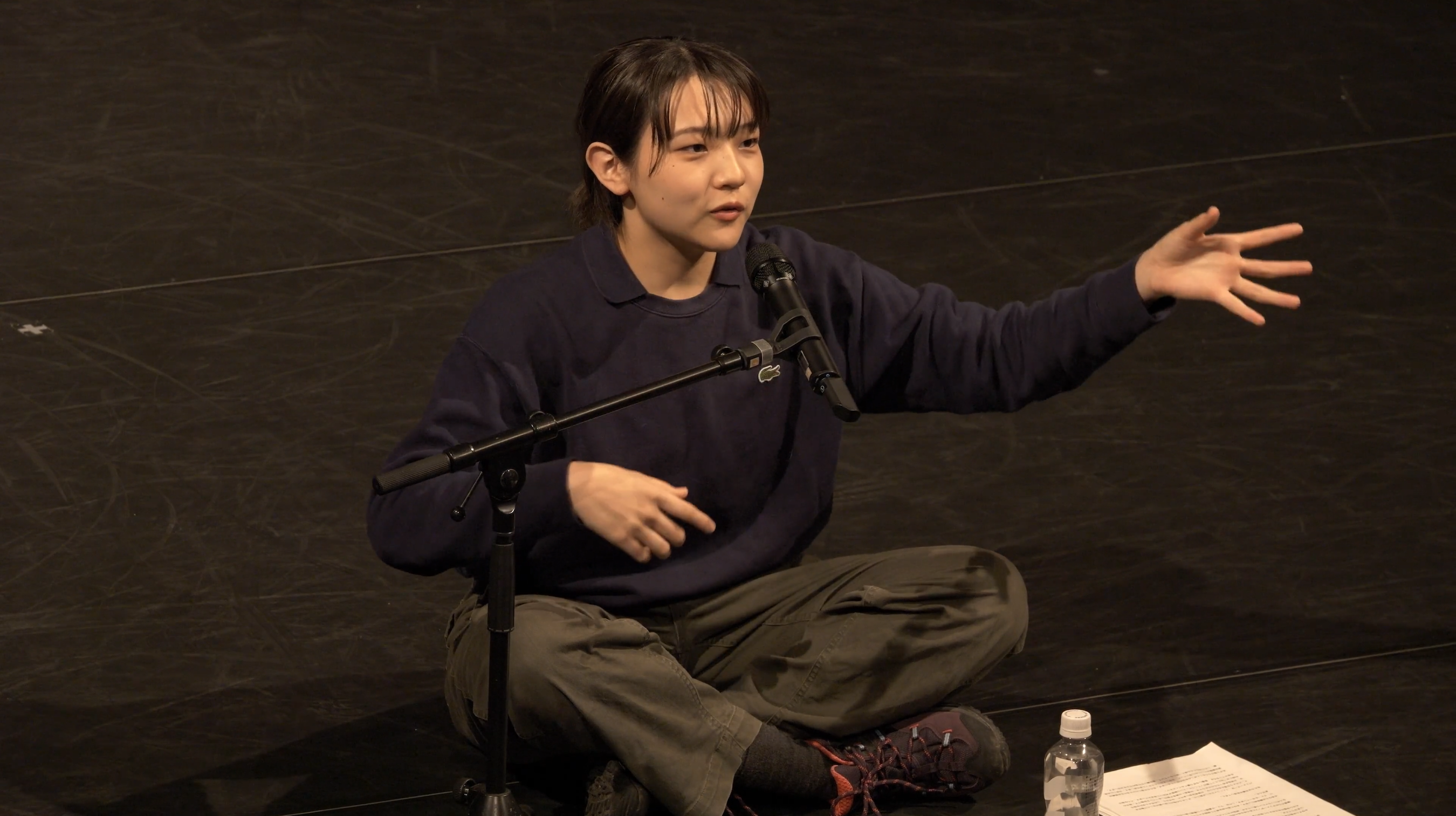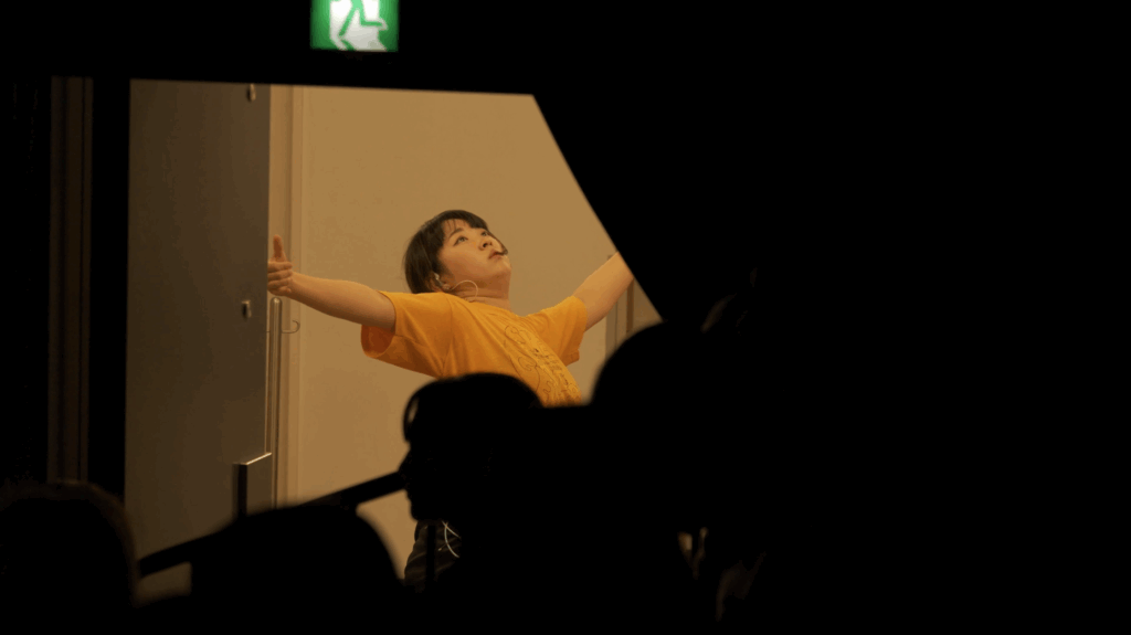 2023年にソロ『EAT』で YDCコンペティションII の最優秀新人賞を受賞した髙橋春香は、現在も大学文学部に在籍する若いダンサー/振付家。今回の新作では、「振付とは何か」を考え、その概念を解体・再構築することを目指す。髙橋は、振付をダンスのためのものに限らず、アフォーダンス(環境が私たちに与える価値)やあらゆる場面での指示、それを可能にする権力装置だと仮定する。意識せずとも自身の行動が環境やモノから影響を受けていないか。「国家予算は振付か?」「マナーは振付か?」など、身体をもって観客に問いかける。